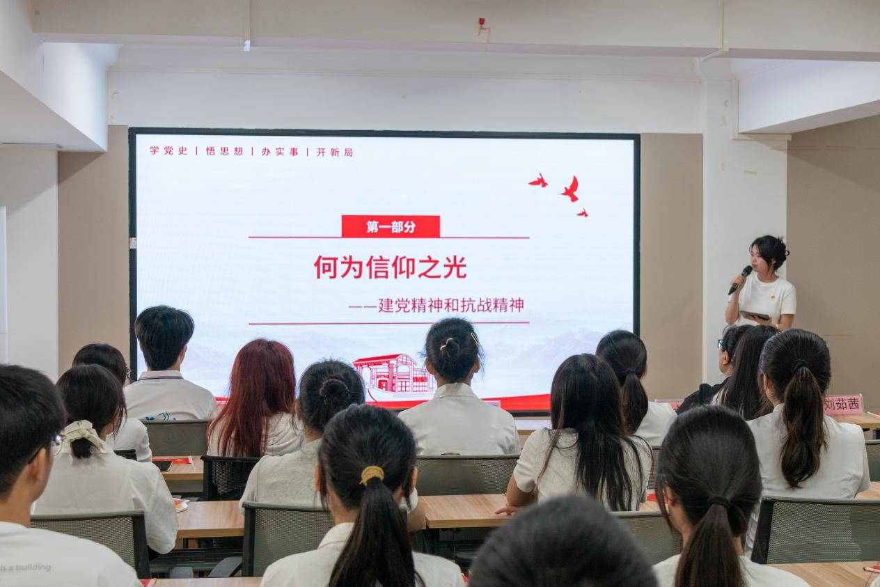学院党委副书记夏士岚以《石库门里诞生的真理之光》为题,带领师生一同回到1921年7月的上海,重温伟大的建党精神。她从中共一大13位代表的人生轨迹切入,生动讲述了他们在不同历史节点上的抉择与结局,展现了信仰的艰难与珍贵,深刻阐释了真理力量在中国革命历程中的奠基作用。她强调,信仰不是轻易得来的,而是在血与火的考验中锤炼而成。新时代青年应以史为鉴,端正入党动机,杜绝侥幸与功利,始终以对党绝对忠诚为根本,以实际行动践行初心使命。