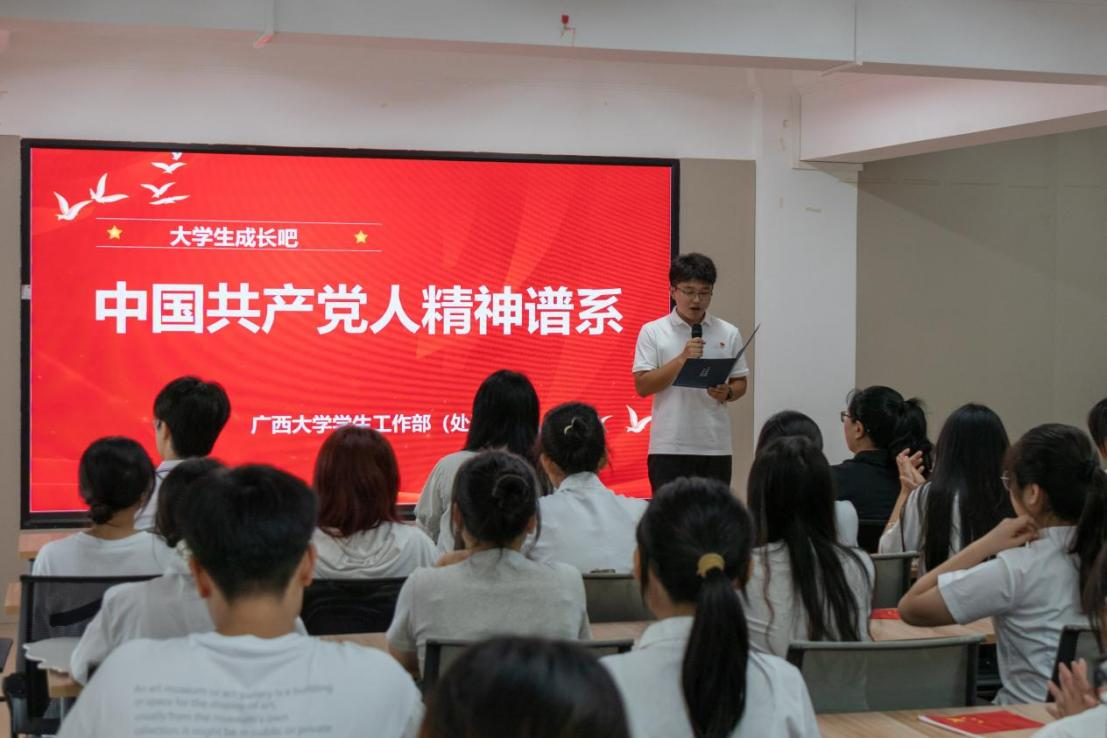 在西21栋“一站式”学生社区16号活动室举办了“大学生成长吧——中国共产党人精神谱系”宣讲活动。此次活动邀请师生代表同台宣讲,围绕伟大建党精神开展宣讲。