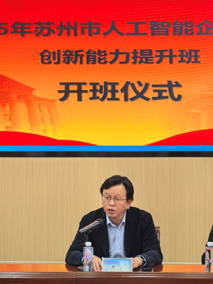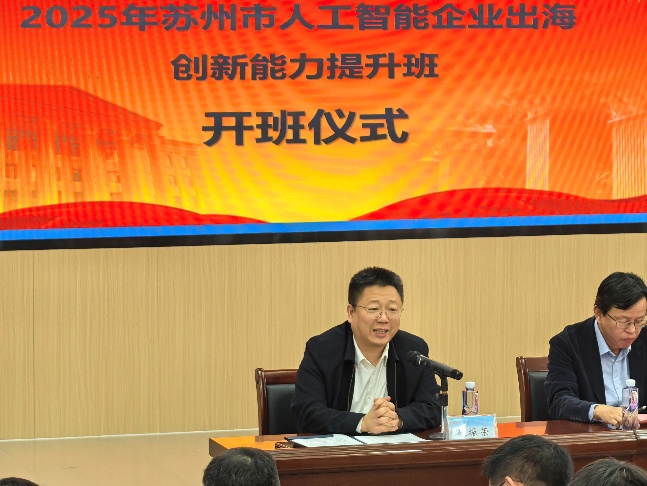在开班仪式上,黄苏指出,苏州市正全力打造人工智能产业发展高地,积极推动本土优秀企业融入全球创新网络。他强调,东盟市场是苏州企业出海布局的战略要地,拥有广阔的数字化应用场景和巨大的合作潜力。本次组织苏州人工智能企业来到广西参加培训,旨在充分利用广西作为中国—东盟合作桥头堡的独特区位与平台优势,帮助企业家们深度洞察东盟市场机遇、精准把握合作政策、有效提升跨文化运营与本地化落地能力。他希望全体学员能够珍惜此次学习机会,将前沿理论、他山之石与苏州产业实践相结合,积极构建与广西各界及东盟市场的合作桥梁,勇于探索人工智能企业出海的新路径。