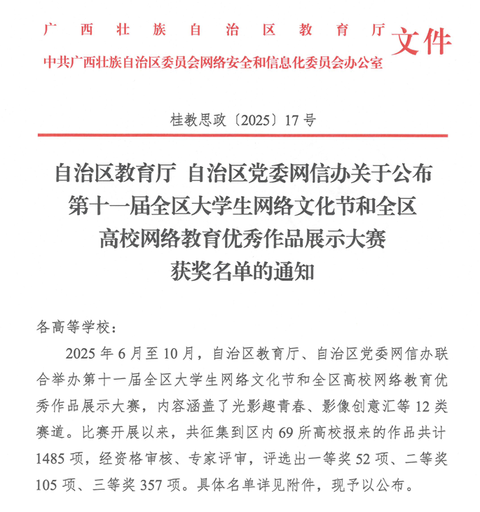 近日,自治区教育厅与党委网信办公布第十一届全区大学生网络文化节和网络教育优秀作品展示活动获奖名单。肉视频