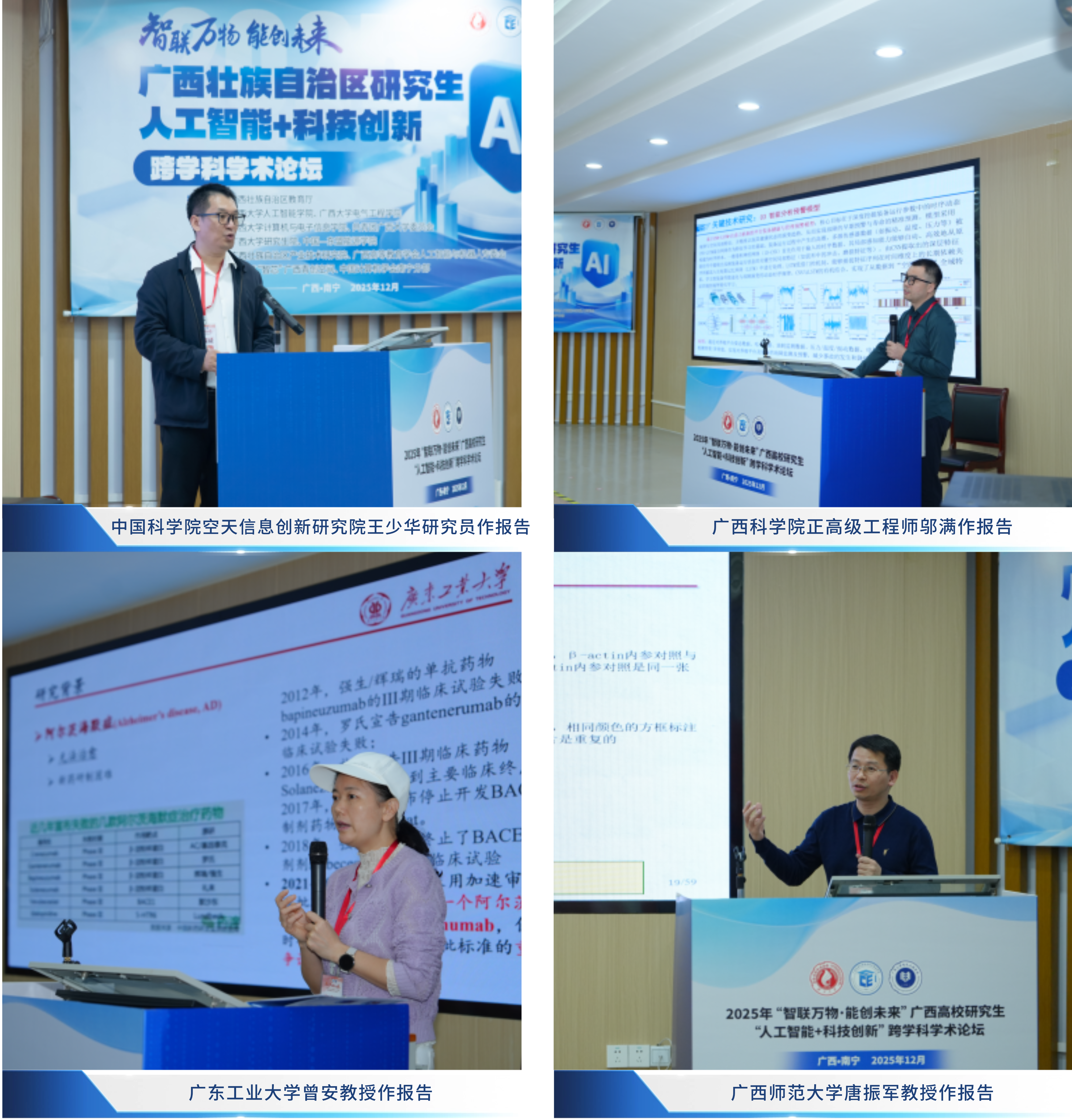 主动服务国家战略与区域发展需求,今年正式成立人工智能学院,并成功招收首届本科生。本次论坛的举办,是学校推动学科交叉融合、培育高层次创新型人才的重要举措,旨在为全区研究生搭建一个开放、协同、前沿的学术对话平台,助力打造面向东盟的人工智能创新高地。