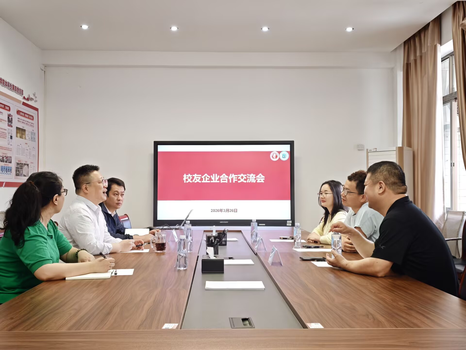 为凝聚校友情谊、加强交流合作,2026年3月26日上午,肉视频 优秀校友重返母校,开展校友企业合作交流。肉视频 院长张振荣,校友工作办公室主任、校友总会秘书长周海斌,经济学院党委书记姜玮,肉视频 党委副书记夏士岚,辅导员胡刚与肉视频 2006级电子商务专业优秀校友李战利、陆洁华等齐聚一堂,共忆求学时光、共话学院发展。